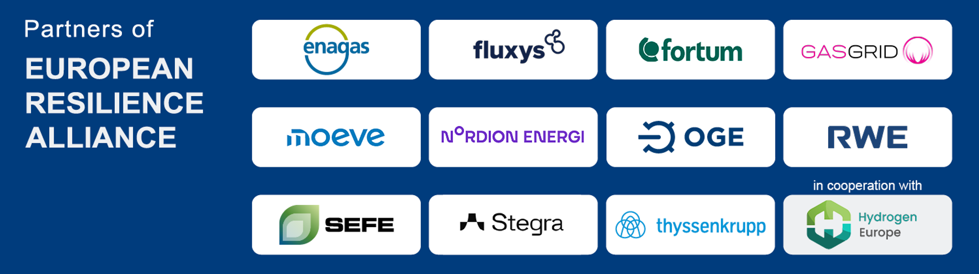 ERA’s founding members include ENAGÁS, FLUXYS, FORTUM, GASGRID FINLAND, MOEVE, NORDION ENERGI, OGE, RWE GENERATION, SEFE, STEGRA, and THYSSENKRUPP, in cooperation with HYDROGEN EUROPE, representing the full clean hydrogen value chain across the European Union.